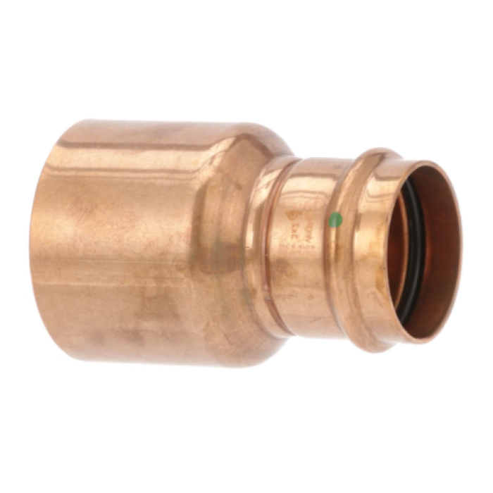 Viega Tube Reducer, Series: 0915.1XL Series, Reducer Fitting, 3 in Connection Size 1, CTS Connection Type 1, 2 in Connection Size 2, Press Connection Type 2, CTS|Press Connection, Copper, Copper Material Construction, For Use With: Viega ProPress® ASTM B88 and B75 Tubings, 4.57 in L Dimensions, 300 psi Pressure, 0 to 250 deg F