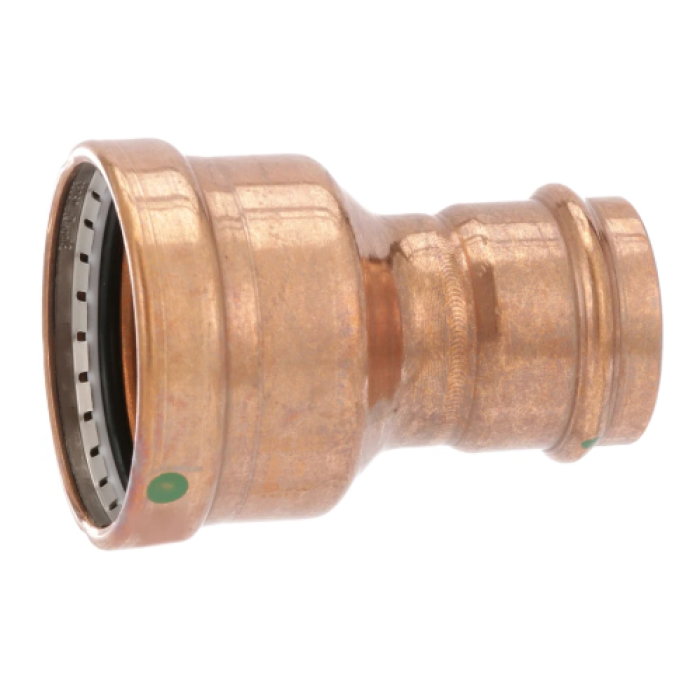 Viega Tube Reducer, Series: 0915.2XL Series, Reducer Fitting, 3 in Connection Size 1, Press Connection Type 1, 2 in Connection Size 2, Press Connection Type 2, Press|Press Connection, Copper, Copper Material Construction, For Use With: Viega ProPress® ASTM B88 and B75 Tubings, 5.08 in L Dimensions, 300 psi Pressure, 0 to 250 deg F