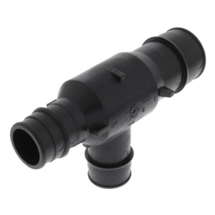 Uponor Reducing Tee, Tee Fitting, 1-1/2 in Connection Size 1, PEX Connection Type 1, 1 in Connection Size 2, PEX Connection Type 2, 1 in Connection Size 3, PEX Connection Type 3, PEX|PEX|PEX Connection, Polymer, Polymer Material Construction, 5.25 in L x 3.3 in W, 160 psi, 200 deg F