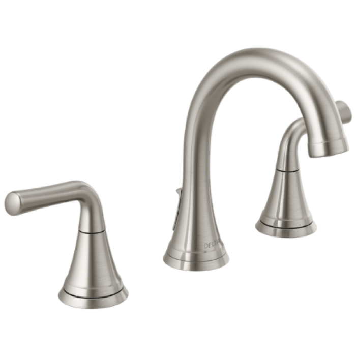 DELTA® Bathroom Faucet, Kayra™ Collection, Model: 3533, Widespread Faucet Configuration, Contemporary Theme/Style, Deck Mounting, 3-Hole Faucet Hole Compatibility, Stainless Manufacturer Finish, No Finish Group Finish Family, 6 to 16 in Faucet Center, 2-Handle, Lever Handle Style, Brass Body, 1.2 gpm Flow Rate, 4-7/16 in Spout Height, 5 in Spout Reach, Rigid Spout, Washerless Cartridge Valve/Cartridge, 1-5/8 in Maximum Deck Thickness, 1/2-14 Connection, NPSM Connection, Pop-Up Drain, Drain Components Included, Low Lead, ADA Compliant, 1-1/8 to 1-1/2 in Dia Hole
