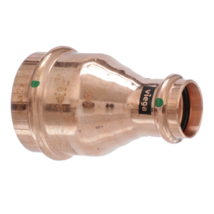 Viega Tube Reducer, Series: 2915.2 Series, Reducer Fitting, 2 in Connection Size 1, Press Connection Type 1, 1 in Connection Size 2, Press Connection Type 2, Press|Press Connection, Copper, Copper Material Construction, For Use With: Viega ProPress® ASTM B88 and B75 Tubings, 3.78 in L Dimensions, 300 psi Pressure, 0 to 250 deg F