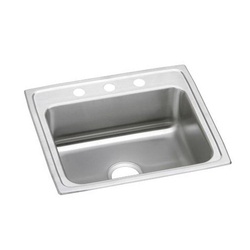 Elkay® Sink, Celebrity Collection, Traditional Theme/Style, Center Drain Location, 3-1/2 in Drain, 4 in Faucet Center, 20 ga Gauge, Stainless Steel, Brushed Satin, 3 Holes, Drop-In Mounting, 1 Bowls, Rectangular Shape, Sink Bowl Size (Single or Left): 21 in L x 15-3/4 in W x 7-1/8 in D, 30 in Minimum Cabinet, 24-3/8 in L x 21-3/8 in W Cutout, 1-1/2 in Faucet Hole, 25 in Length, 22 in Width, 7-1/2 in Height, Domestic/Import: Domestic