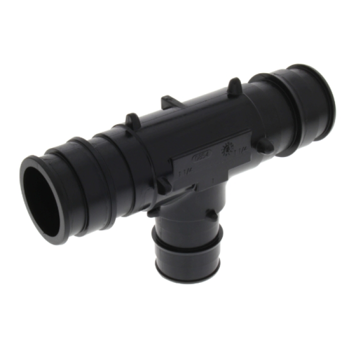 Uponor Pipe Reducing Tee, Tee Fitting, 1-1/4 in Connection Size 1, PEX Connection Type 1, 1-1/4 in Connection Size 2, PEX Connection Type 2, 1 in Connection Size 3, PEX Connection Type 3, PEX|PEX|PEX Connection, Polymer, Polymer Material Construction, 73 deg F, 180 deg F, 200 deg F