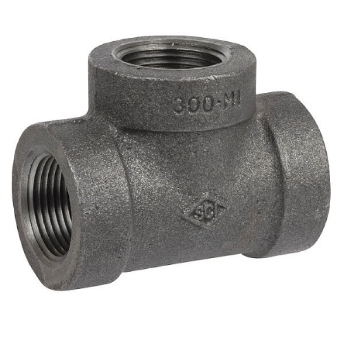 SCI® 33T3 Series 33T 3030C Tee, 3 in FNPT x 3 in FNPT x 3 in FNPT, Iron, Black, 300 lb