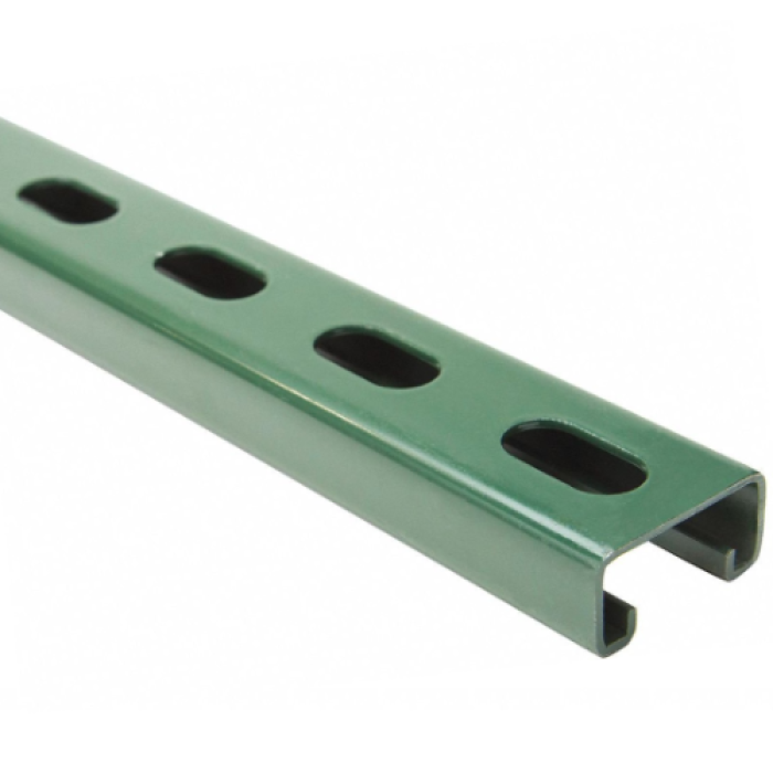 nVent CADDY Slotted Strut Channel, Series: C14 Series, 20 ft Length, 1-5/8 in Width, 13/16 in Height, 14 ga Thickness, 7/8 in Inside Channel Width, 1-1/8 in Slot Length, 9/16 in Slot Width, Steel, Painted, Green