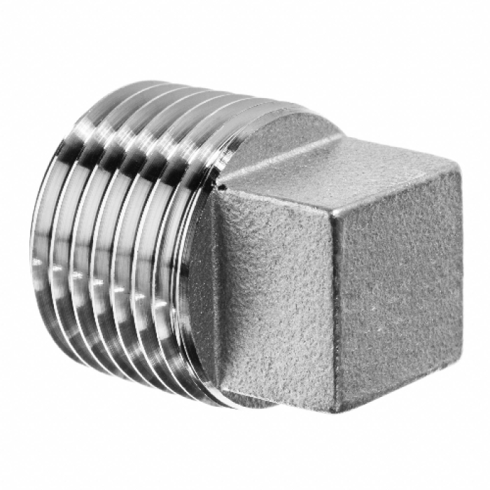 Merit Brass K617A-02 Square Head Solid Plug, 1/8 in MNPT, Stainless Steel, STD, Class 150