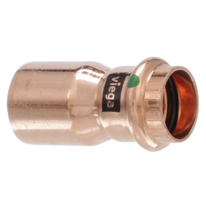 Viega Tube Reducer, Series: 2915.1 Series, Reducer Fitting, 1 in Connection Size 1, CTS Connection Type 1, 3/4 in Connection Size 2, Press Connection Type 2, CTS|Press Connection, Copper, Copper Material Construction, For Use With: Viega ProPress® ASTM B88 and B75 Tubings, 2.32 in L Dimensions, 300 psi Pressure, 0 to 250 deg F