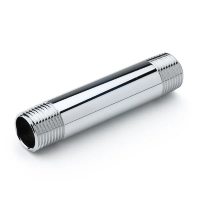 Merit Brass Nipple, Nipple Fitting, 3/8 in Connection Size 1, MNPT Connection Type 1, 3/8 in Connection Size 2, MNPT Connection Type 2, MNPT|MNPT Connection, 2-1/2 in Length, Brass, Seamless Red Brass Material Construction, Chrome, SCH 40 Schedule