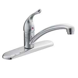 The Chateau® Collection delivers Moen® performance and reliability with a simple, understated appeal. A chrome finish creates a bright, highly reflective look, while the low-arc spout is designed for the more conventional kitchen.