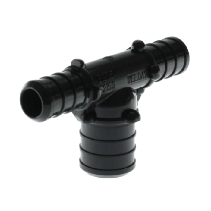 Uponor Reducing Tee, Tee Fitting, 3/4 in Connection Size 1, PEX Connection Type 1, 3/4 in Connection Size 2, PEX Connection Type 2, 1 in Connection Size 3, PEX Connection Type 3, PEX|PEX|PEX Connection, Polymer, Polymer Material Construction, 3.64 in L x 2.32 in W Dimensions, 160 psi Pressure, 200 deg F